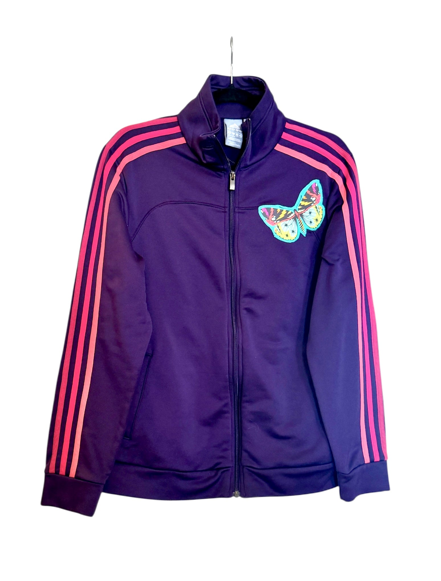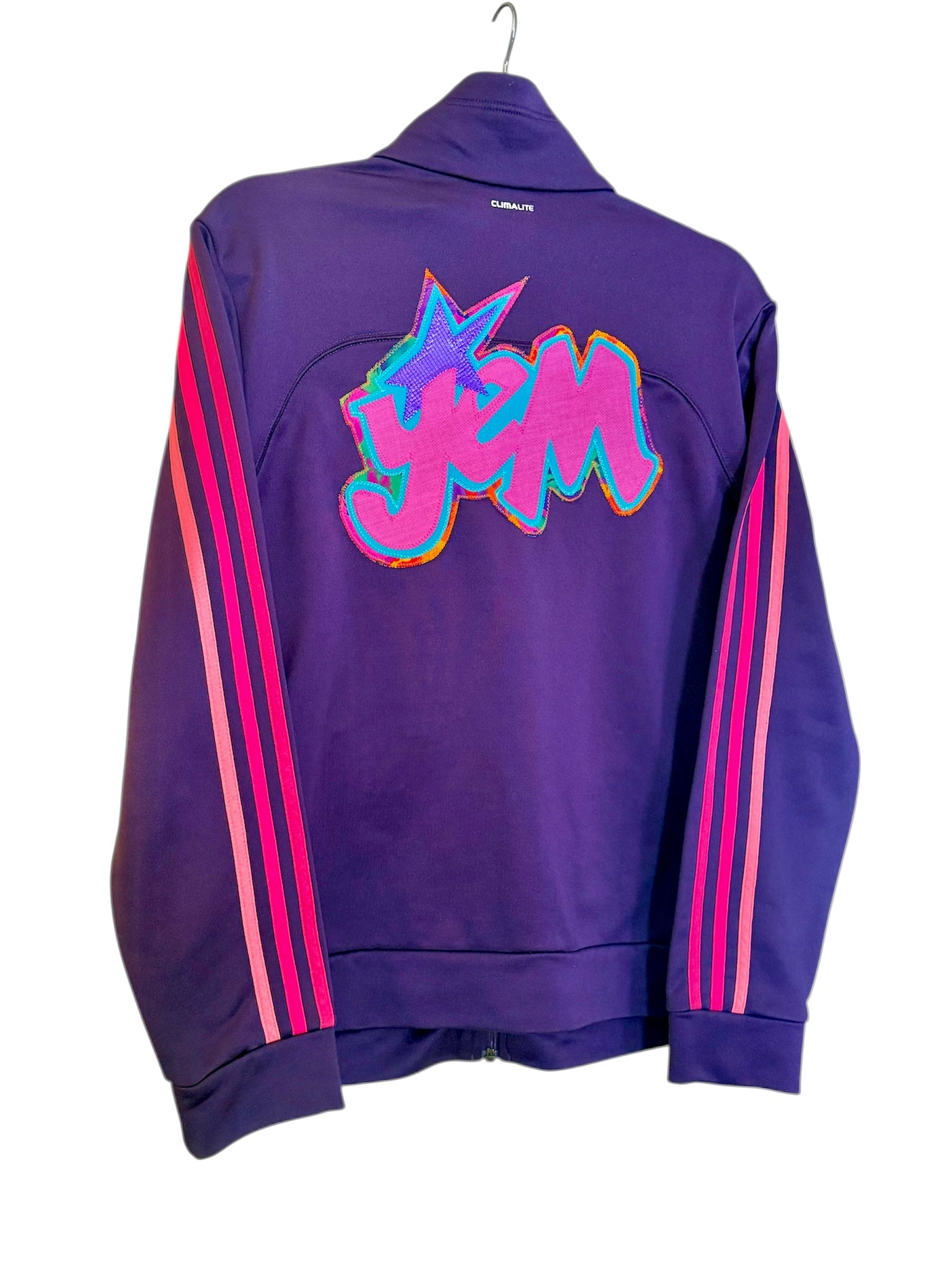 Adidas jacket size large Secondhand sourced with added sewn appliqué patches. One of a kind color combinations & design.