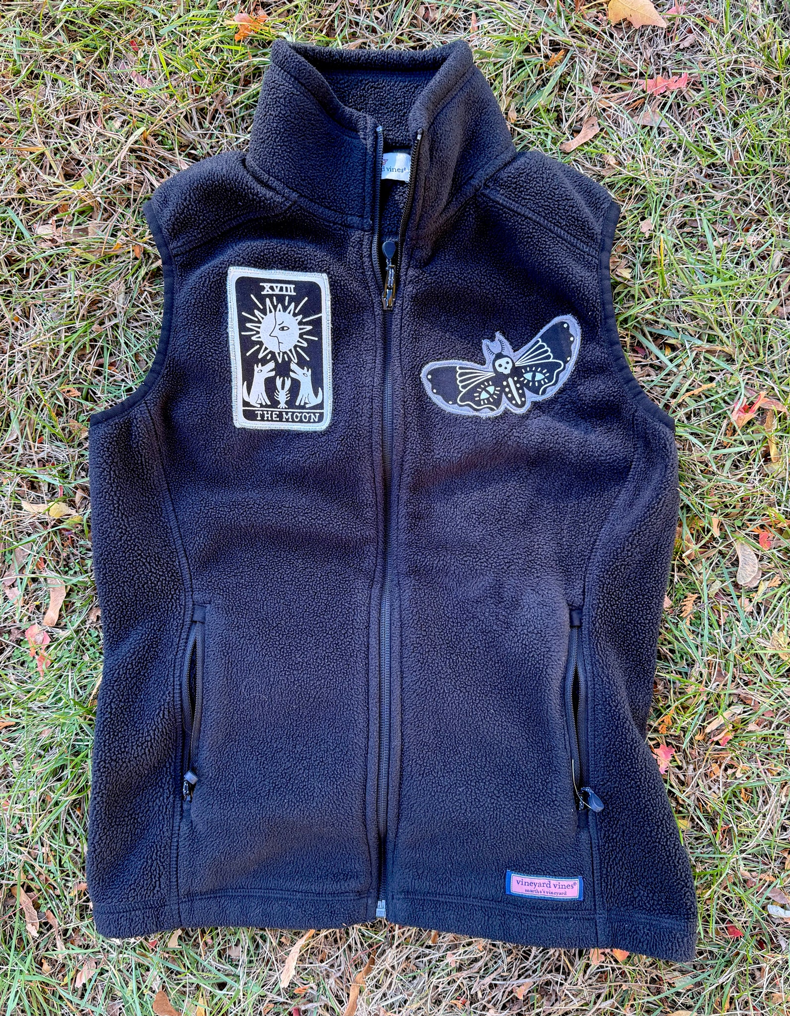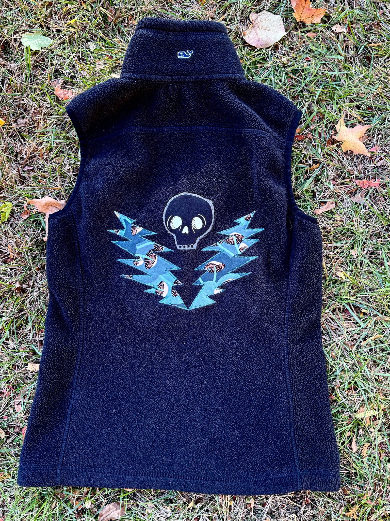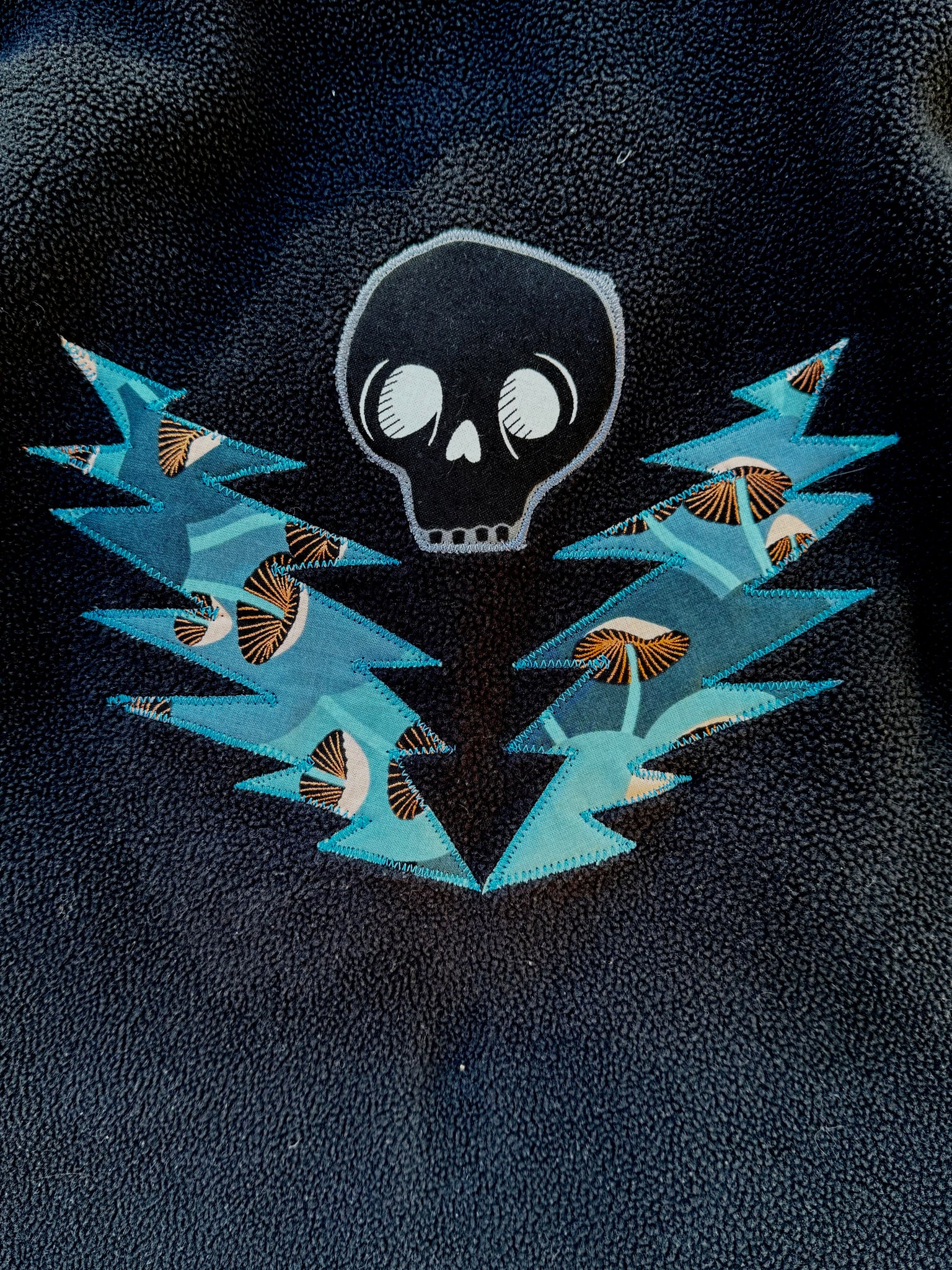 Secondhand sourced with added sewn appliqué patches. One of a kind color combinations & design.