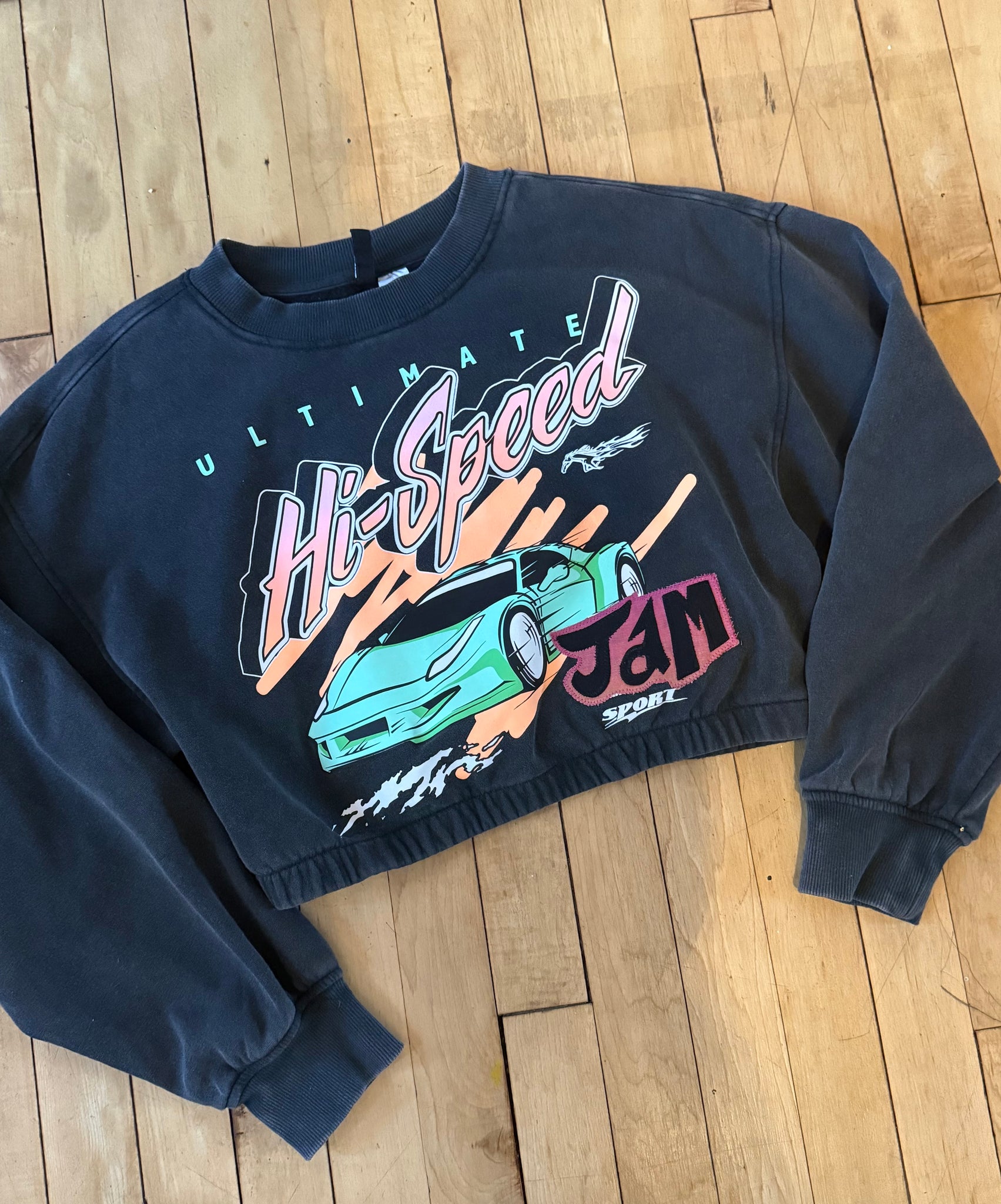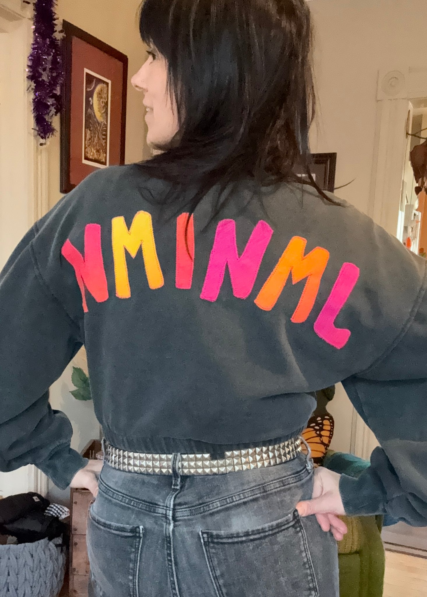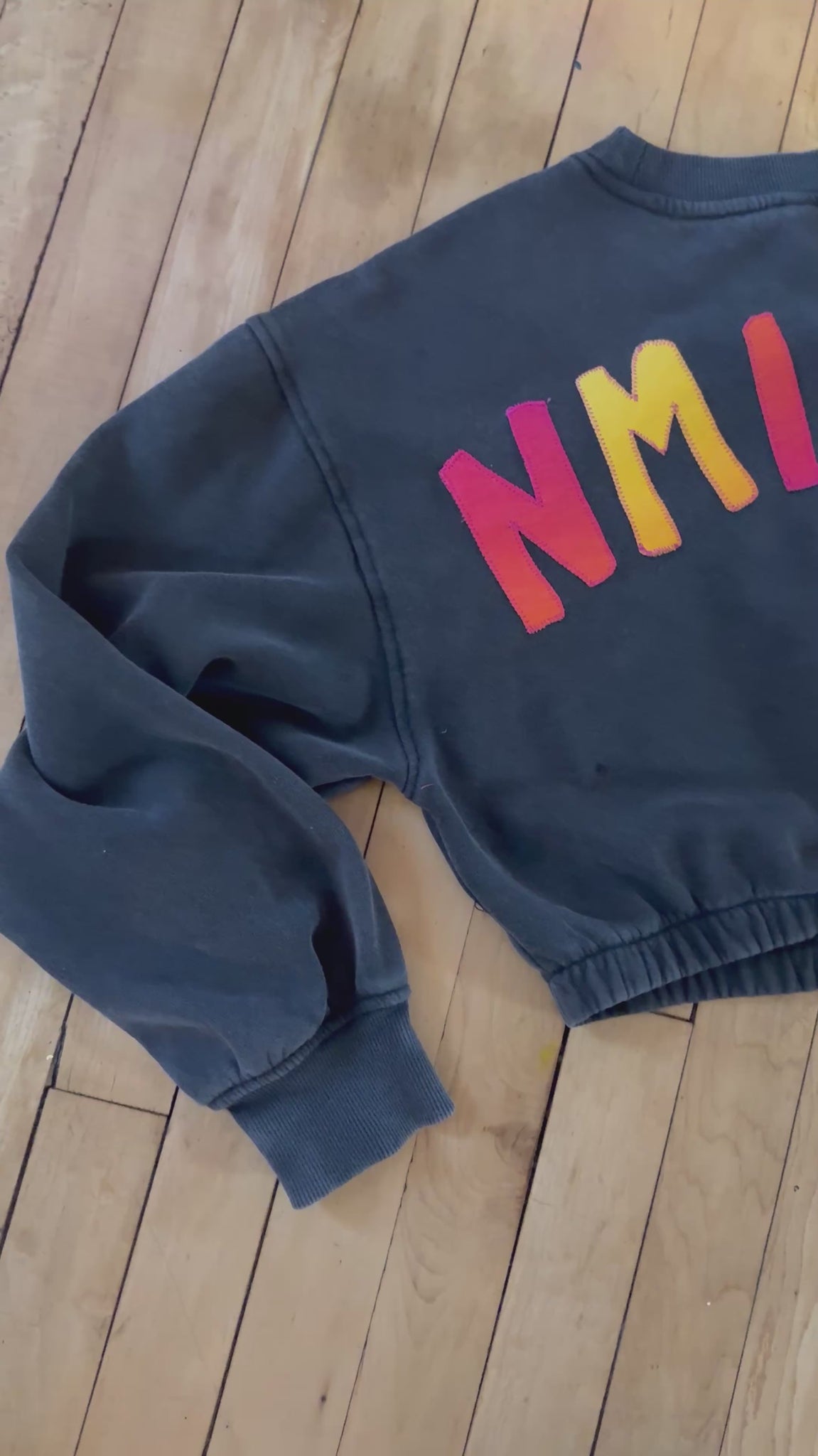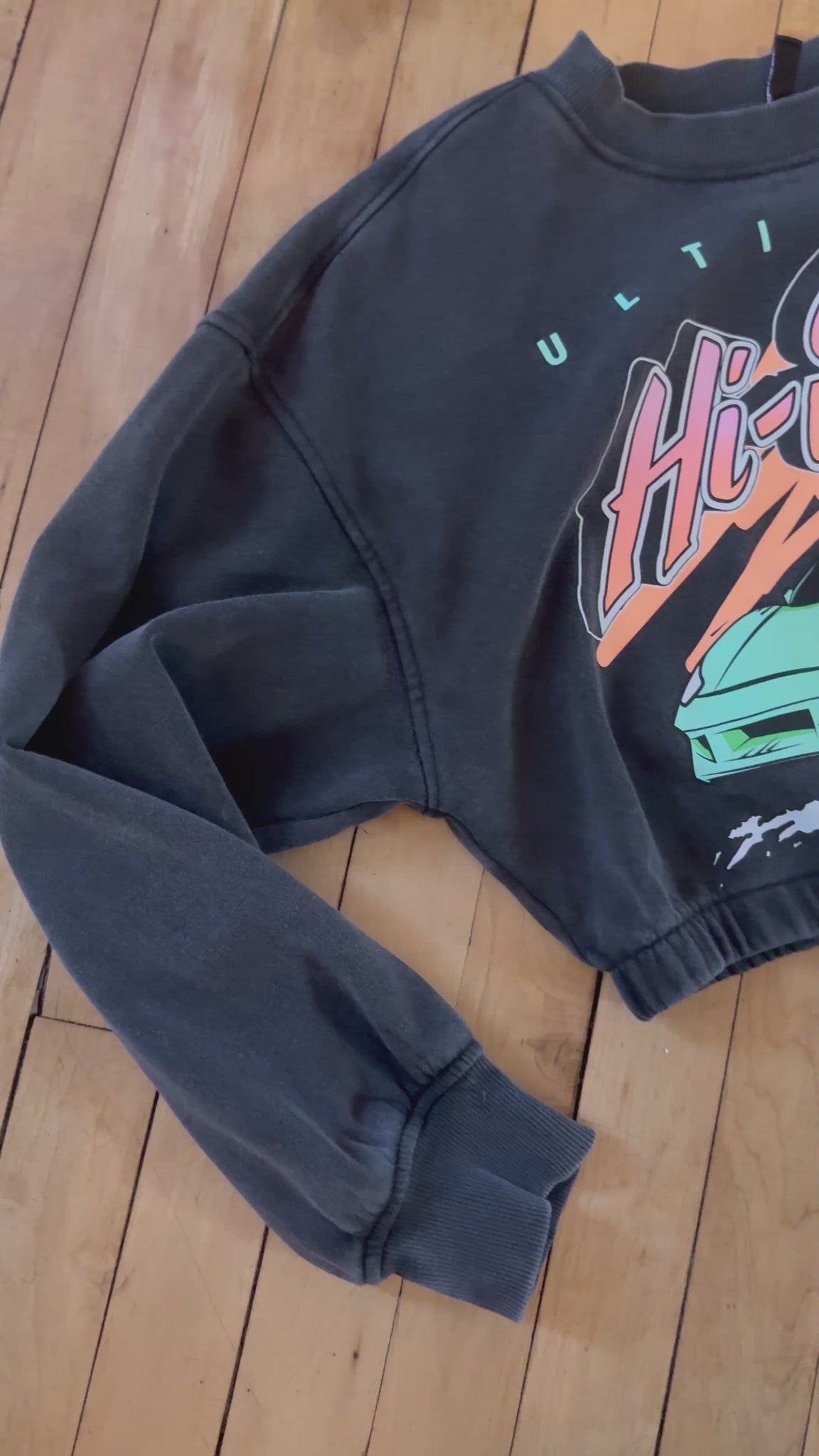 Ladies size medium cropped upcycled sweatshirt with added appliqué. One of a kind would fit a small-medium