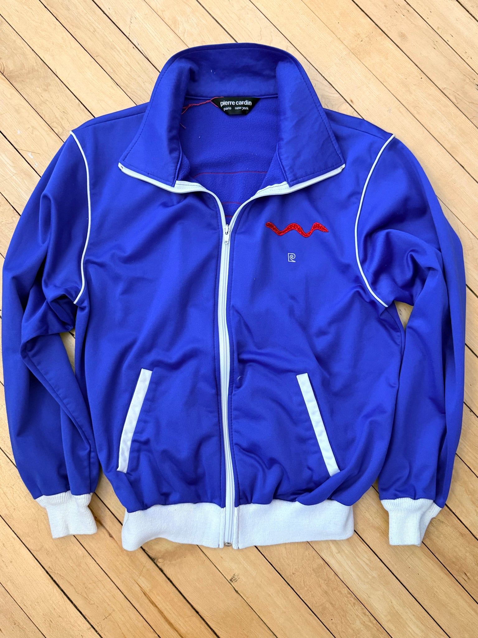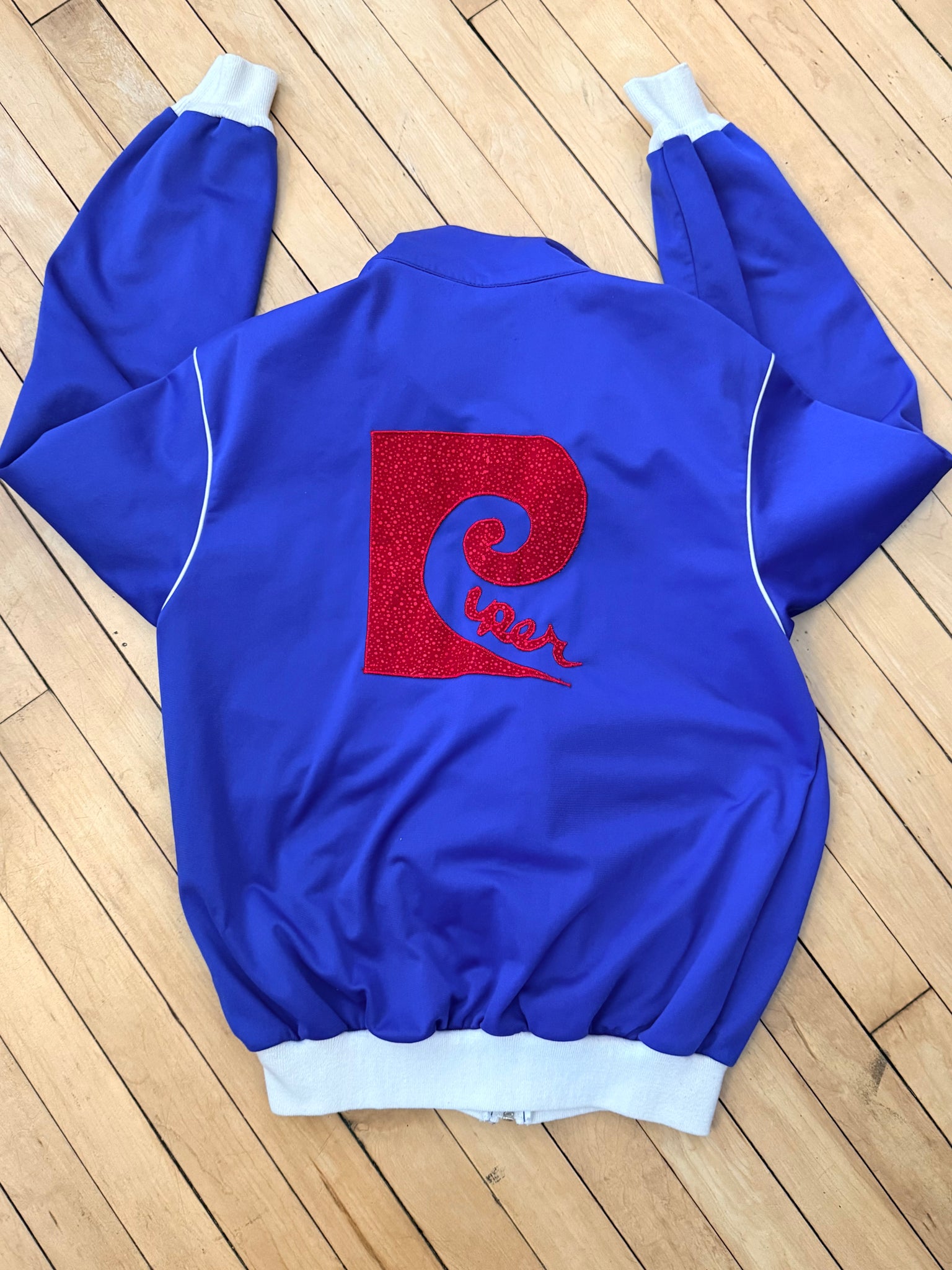 Vintage Pierre Cardin sports jacket with Piper theme added sewn appliqué patches. One of a kind color combinations & design. Labeled men’s medium.