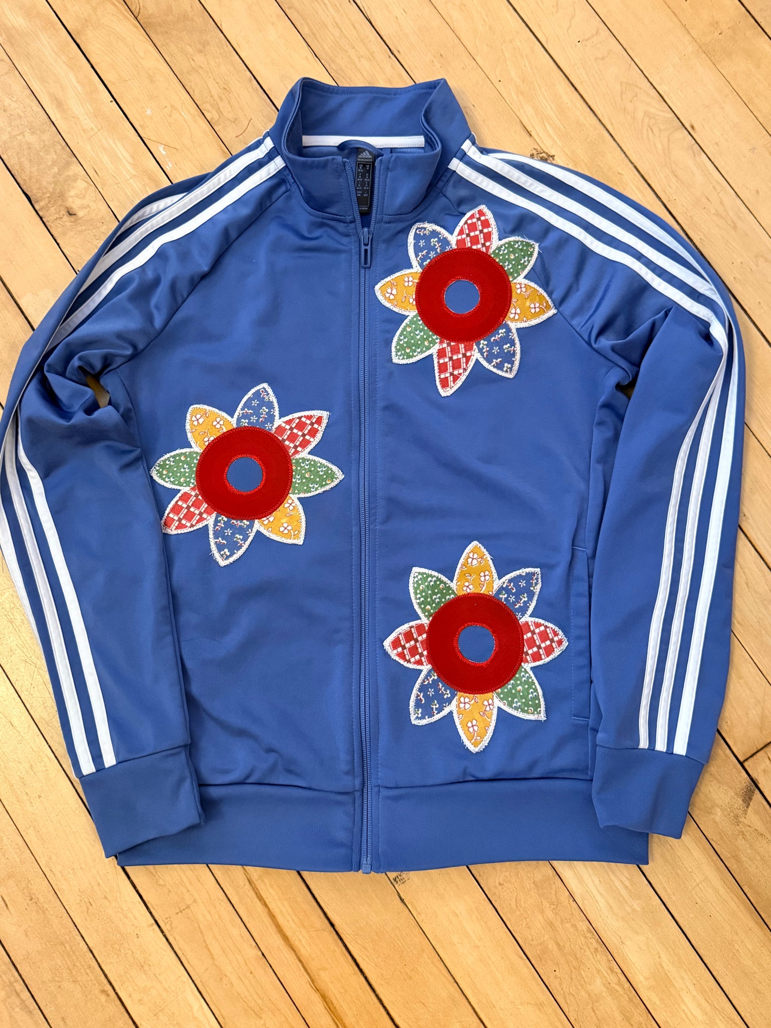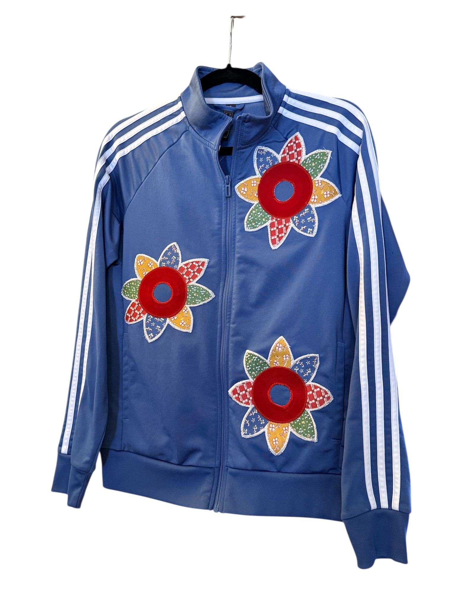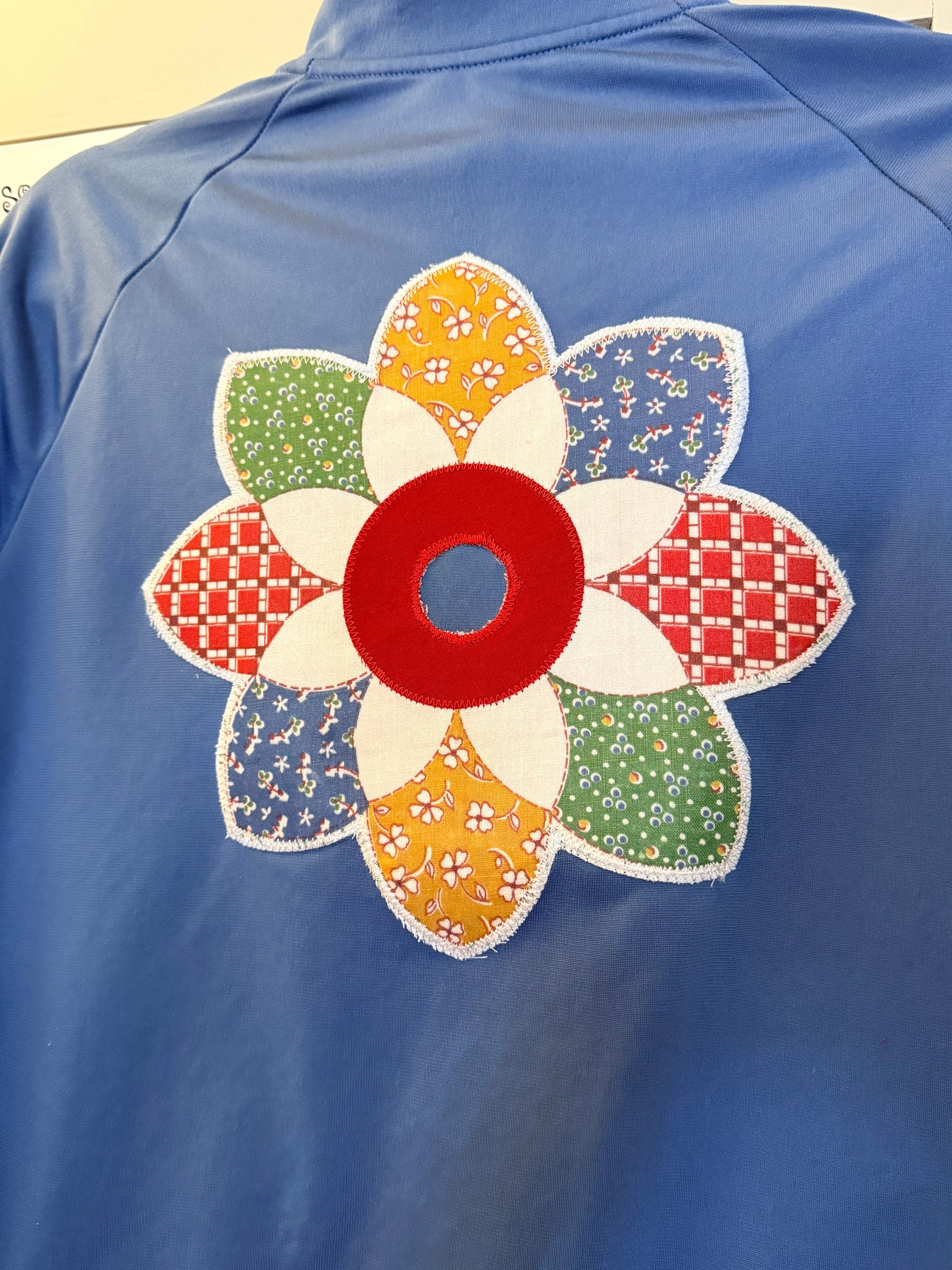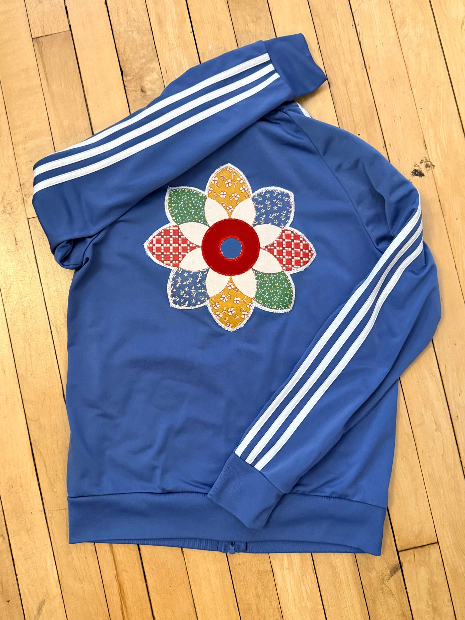 Adidas size medium Secondhand sourced with added sewn appliqué patches. One of a kind color combinations & design. measurements laying flat